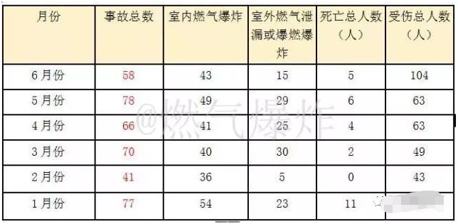 2018上半年全國燃氣爆炸數(shù)據(jù)分析報告