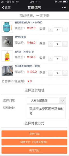2、以下是模擬“艾信燃氣”液化氣公司,實際使用中,會將商城系統(tǒng)安裝到液化氣公司自己的微信服務號。