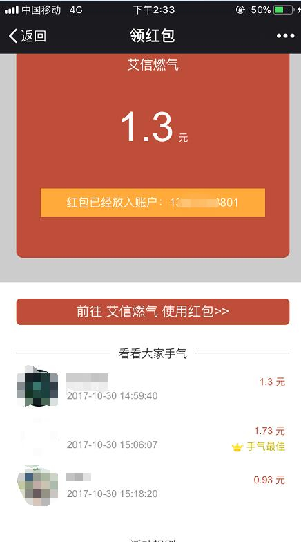 4、完成訂氣后,用戶可以在朋友圈發(fā)紅包,讓朋友搶紅包,然后到你們微信商城消費。讓液化氣用戶介紹液化氣用戶,有朋友圈廣告作用。